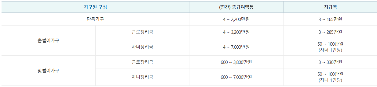 ✅ 근로장려금은 소득과 재산이 일정 금액 미만인 근로자, 종교인, 전문직을 제외한 사업자 가구에 대해 일하는 만큼 가구원 구성과 부부합산 총급여액 등에 따라 산정된 근로장려금을 지급하여 근로를 장려하고 소득을 지원하는 일과 연계된 복지제도입니다.